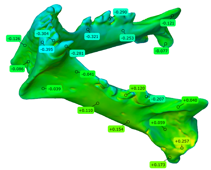 打印的巨頦虎化石模型全尺寸精度檢測結(jié)果