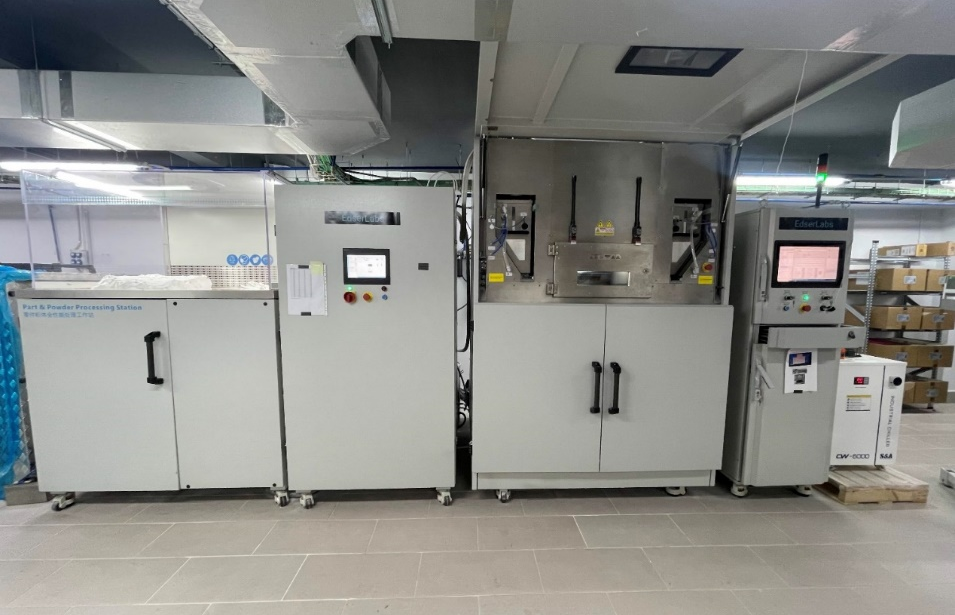 位于巴塞羅那的 Edser Lab 中安裝的 S600DL 打印設備和 PPS 零件粉體全性能處理工作站