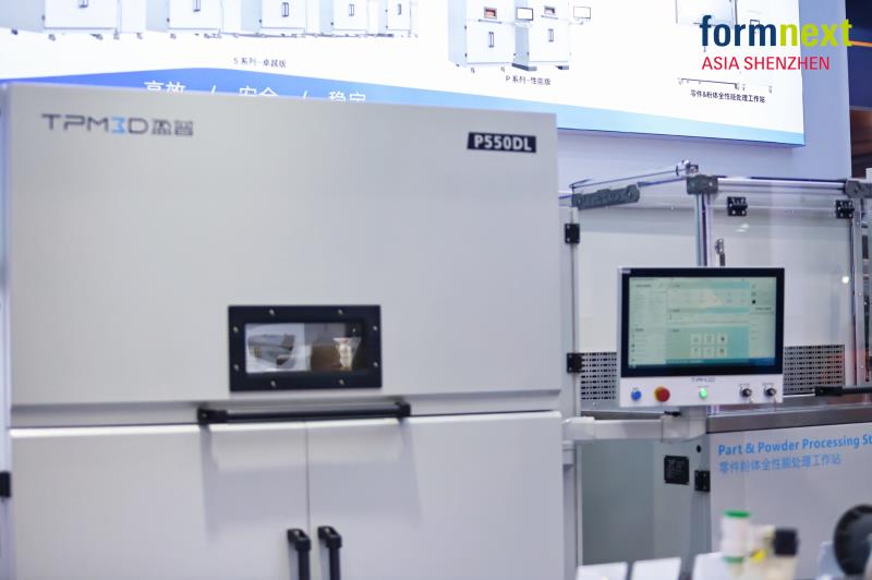 展會現(xiàn)場,盈普的核心展品——大尺寸雙激光SLS打印設備P550DL及一站式粉末處理工作站PPS成為了專業(yè)觀眾關注的焦點。