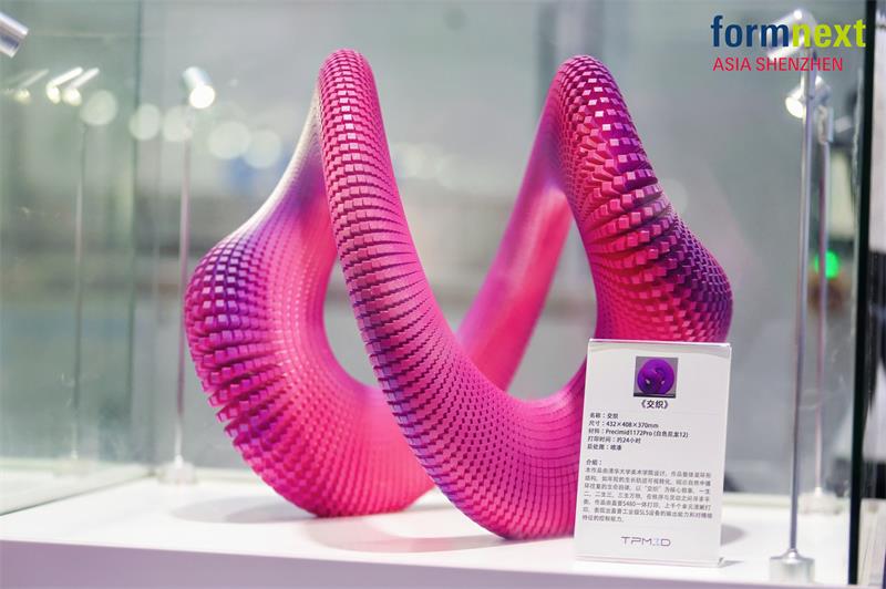 與清華美院雕塑系師生合作的藝術展件 《伴》與《交織》 成為展位上的"網(wǎng)紅"打卡點。這兩件作品不僅以其復雜的鏤空結(jié)構和精湛的后期處理效果展現(xiàn)了SLS技術無需支撐、成型精度高的核心優(yōu)勢,更值得一提的是,它們由100%全舊粉打印完成,這不僅節(jié)省了材料成本,更有力證明了盈普PPS設備在粉末老化控制方面的卓越性能,實現(xiàn)了藝術價值與環(huán)保理念的統(tǒng)一。